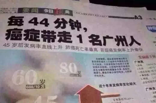 新加坡每死亡的3人中就有1人死于癌癥,臺(tái)灣每死亡的4人中就有1人死于癌癥,中國(guó)大陸