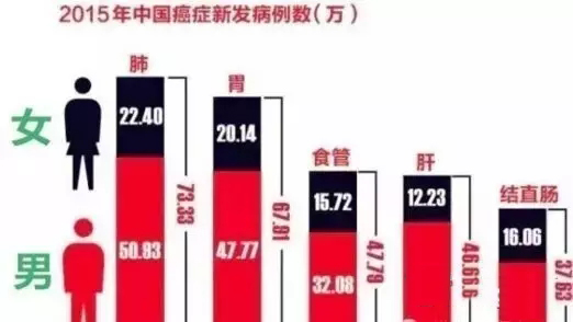 2015年新增429萬(wàn)癌癥患者,死亡281萬(wàn)。